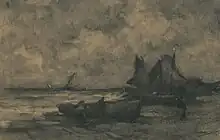 Mura remained in London until 1915, painting and teaching. He contributed work to The Dome and exhibited at the Goupil Gallery and the Obach and Co. Gallery.[5] He exhibited alongside James Abbott McNeill Whistler at the NEAC in 1903, and his Landscape with Sheep was exhibited at the Royal Academy in 1904. His work was exhibited at the Louisiana Purchase Expo St. Louis World's Fair in 1904 and received the highest award for charcoal painting.[6] In 1907 the Obach Gallery exhibited a collection of his pictures and charcoal drawings.[7] A review in The Studio commented: "Mr. Mura successfully imparts the true feeling for English landscape in a style which has benefited much from the study of the Barbizon and Dutch masters."[8] An essay on his work by A. L. Baldry was published in The Studio in London in 1913.