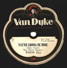 Van Dyke record featuring the tune You're Gonna Be Mine written by Fred Hall and Arthur Fields. Although the performance is credited to "Big Town Jazzers" the tune is actually played by Hall's band as well.