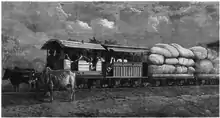 The railway track has the distinction of being the first narrow-gauge line to be laid in British India, and also the first railway to be owned by any Princely State of India. In 1862, Maharaja Khanderao Gaekwad, the Maharaja of Baroda, inaugurated 8 miles (13 km) of a 2 ft 6 in (762 mm) railway line from Dabhoi to Miyagam. Oxen were used to haul the train, although in 1863, Nielson & Co. built a locomotive to be operated on the line from Dabhoi to Miyagram, as the 6.5 km/m rails were not suited for the regular use of an engine.