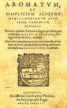 Garcia de Orta's work was accidentally discovered by Clusius in early 1564 and he translated it into Latin, while also changing it from a dialogue to an epitomized form,[19] and this was widely read across Europe and underwent several editions.[21]