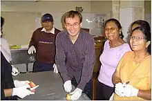 Thomas helping to cut fruit for donation to a local hospital in 2008.