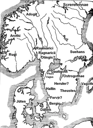 | Adogit | Hålogaland, the northernmost Norwegian Petty Kingdom. Between the Namdalen valley in Nord-Trøndelag and the Lyngen fjord in Troms. | Jordanes | ||