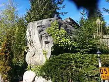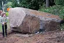 "Granite" is a 6-by-7-by-4.5-foot (1.8 m × 2.1 m × 1.4 m), 30,000-pound (14,000 kg) granite boulder discovered "under a bunch of sticker bushes" during an October, 2015 construction project in Edmonds. After attempts to destroy the boulder resulted in destruction of the power equipment used, the city offered it for free to a city resident who would accept it on their property.[10][11]
