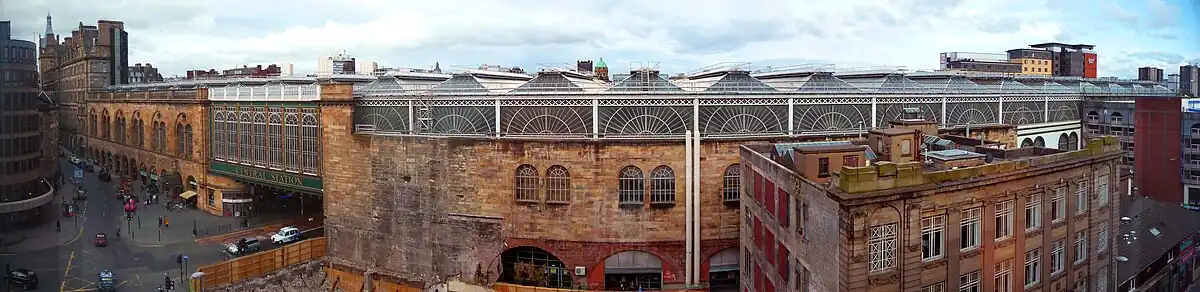- ↑ Historic Environment Scotland. "71, 97, 99 Gordon St, and 16, 18, 50 Hope St, Central Station & Hotel, (former Caledonian Railway Station)... (Category A Listed Building) (LB33029)". Retrieved 20 March 2019.