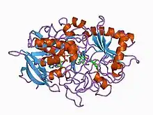 2. Li J, Vrielink A, Brick P, Blow DM (November 1993). "Crystal structure of cholesterol oxidase complexed with a steroid substrate: implications for flavin adenine dinucleotide dependent alcohol oxidases". Biochemistry. 32 (43): 11507–15. doi:10.1021/bi00094a006. PMID 8218217.