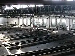 - the fan locomotive shed with workshops from 1875, rebuilt in 1888, 1894–1895, 1914, 1922 and 1940 with 23 stalls, and the fan locomotive shed with a locomotive repair hall and workshops from 1908 to 1910, rebuilt around 1915 and 1941–1942, which has 24 stands, which gives a total of 47 stands, which makes it the largest fan hall in Europe