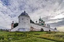 It was supposedly established in the early 14th century during the reign of Ivan I of Moscow (Ivan Kalita). In 1382 Tokhtamysh Khan destroyed the town and the monastery with it. According to the legend, Grand Princess Eudoxia of Moscow arrived as a pilgrim the day before the attack and managed to escape the Horde on a raft, covered by fog of the Pleshcheyevo lake. In gratitude for the miraculous salvation, she rebuilt the monastery and established a tradition of Easter rides on rafts across the lake.[2]
