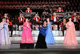 - 1 2 elufatv (28 October 2015). "조선로동당창건 70돐경축 1만명 대공연《위대한 당, 찬란한 조선》제1부". YouTube. Retrieved 31 May 2020.