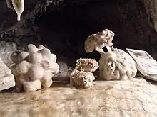 Objects are put under the grottoes' springs for six months to a year, which covers them in limestone, creating a "petrified" look.[5]