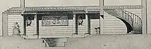 An architectural section of the nymphaeum based on the plan by Alexandre-Théodore Brongniart, which also shows one of the limestone reliefs made by Claude Michel. The columns and the niches made for the amphoras are still visible today. The amphoras were also made by Claude Michel. Four of the amphoras form part of the collections of the Louvre since 1986.[26]