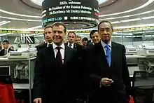 Russian President Dmitry Medvedev with exchange Chairman Ronald Arculli during a visit to Hong Kong on 17 April 2011