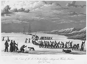 HMS Griper was a Bold-class gun-brig of the British Royal Navy, built in 1813 by Mark Williams and John Davidson at Hythe.[lower-alpha 1] She participated in the 1819 expedition to the Arctic led by William Parry, made a voyage to Greenland and Norway in 1823, and took part in Parry's third expedition in 1824 as a support ship. Her crew in 1819, 1823, or 1824, qualified for the "Arctic Medal", which the Admiralty issued in 1857.[2] She was eventually broken up in 1868.