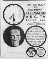 - ↑ "Helpmann under TV surveillance". The Age TV Guide. 8 October 1964. p. 3.