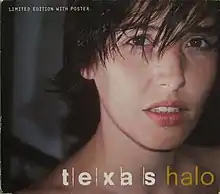 "Halo" is a song by Scottish alternative rock band Texas, released on 7 April 1997 as the second single from their fourth studio album, White on Blonde (1997). The song was written by Texas frontwoman Sharleen Spiteri and guitarist Johnny McElhone and was produced by Texas and Mike Hedges. "Halo" debuted and peaked at number 10 on the UK Singles Charts. The music video, filmed in Hong Kong, features Spiteri and a Chinese woman acting as her "halo".