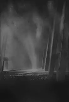 Danuser has been invited to contribute to international events such as the biennales in Venice and Lyon.[2] He is one of the first photographers to have taken the conceptually compelling step of presenting his large-format tableaux on the floor in a museum exhibition.[4] In the 1980s Danuser embarked on his cycle In Vivo, completing it in 1989.[1] Contemporaneously he produced architectural photographs in the project Partituren und Bilder/Scores and Pictures. In 1990 Danuser won the competition for the large-scale design of the walls at the University of Zurich-Irchel, which led to the Institutsbilder (1992).[1][2] He later completed another project in an architectural context, the Schiefertafel Beverin (2000–2001).[5] The Frozen Embryo Series, made in the 1990s, a follow-up of In Vivo, also prefigured two ongoing works, The Erosion Project and Entscheidungsfindung – Decision taking.[6]