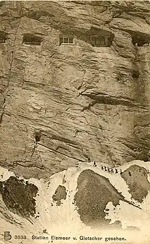 Jungfrau Railway Station Eismeer seen from glacier (ca. 1909).