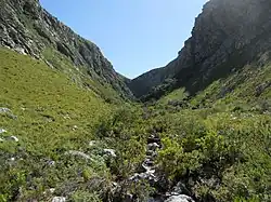 The Harold Porter National Botanical Garden covers almost 200 ha between mountain and sea, in the heart of the Cape Fynbos region within the Kogelberg Biosphere Reserve to the east of Cape Town, South Africa, specifically near Betty's Bay along Clarence Drive (R44). With about 1,600 plant species, the area contains a floral diversity per unit area that is greater than anywhere else in the world. The Garden consists of 10 hectares of cultivated gardens and 190.5 hectares of pristine natural fynbos. In addition, 60 species of birds can be found there, as well as porcupines, genets, skunks, hyraxes, baboons, and snakes. Foot trails reach cliffs, ravines, heaths, forests, streams, and mountain pools.