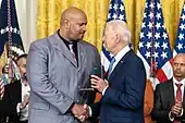 Along with other officers who protected the Capitol during the attack, Dunn was awarded the Congressional Gold Medal on December 6, 2022.[23] On January 6, 2023, President Biden awarded Dunn with the Presidential Citizens Medal.[4][24][25] The county council of Montgomery County presented him with a citation in June 2023.[26]