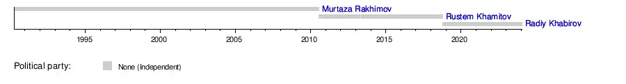 The first President of Bashkortostan was Murtaza Rakhimov, who has held the office from 12 December 1993. He was re-elected twice—on June 4, 1998 and on 21 December 2003. The election procedure was abolished in 2006, when Rakhimov was appointed President by the Bashkortostan Kurultai according to the recommendation of the President of Russia, Vladimir Putin.[4]