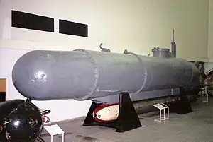 The submarine could also carry a diver in the nose rather than a magnetic mine.[3]