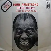 The same month, Kapp Records released Armstrong's publishing demo as a commercial single. His version reached No. 1 on the U.S. Billboard Hot 100, ending the Beatles' streak of 3 chart-topping hits in a row over 14 consecutive weeks. "Hello Dolly!" became the most successful single of Armstrong's career, followed by a Gold-selling album of the same name.[2] The song also spent nine weeks atop the adult contemporary chart shortly after the opening of the musical. The song also made Armstrong the oldest artist ever to reach No. 1 on the Hot 100 since its introduction in 1958. Billboard ranked the record as the No. 3 song of 1964, behind the Beatles' "I Want to Hold Your Hand" and "She Loves You".[3]