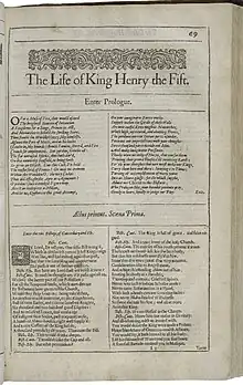 The first page of The Life of King Henry the Fifth, printed in the Second Folio edition of 1632