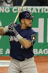 On June 2, 2015, Pérez was claimed off waivers by the Milwaukee Brewers and activated the same day.[4] Since joining the Brewers, Pérez has primarily been used as a utility player while appearing in at least 120 games during the 2016–2018 seasons.[5][6] On June 28, 2019, Pérez was designated for assignment.[7] Pérez was outrighted on July 3. Perez Returned to the Brewers when they optioned Travis Shaw to the minors and bought Hernan's minor league contract. He played shortstop that evening versus the Texas Rangers.[8]