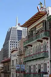 Hip Sing Association building (pale with red diamonds) in Chinatown, San Francisco