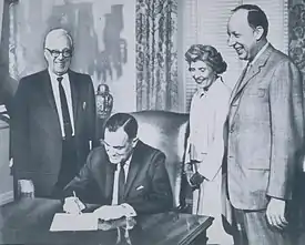 Then-Virginia governor, Mills Godwin, signing a bill allowing the merger of RPI and MCV, thus creating Virginia Commonwealth University.