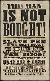"The man is not bought! : He is still in the slave pen in the courthouse!..." The ad publicizes the current situation of the arrested fugitive slave Anthony Burns.