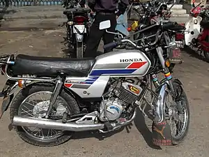 The Honda H100S is a two-stroke motorcycle introduced in June 1983, alongside the original Honda H100-A, which was released to the UK in February 1980. The H100-A was built for fulfilling the role of an economical, practical, lightweight commuter machine. It was designed for riders who preferred the simplicity of the two-stroke engine. In Honda style, equipment such as a fully enclosed chain, capacitor discharge electronic ignition (CDI), and a separate oil injection system allowed easy operation of the motorcycle with the minimum of maintenance and attention. The lowly-tuned engine gives adequate performance for use in normal traffic conditions, but does not consume high amounts of fuel. Under normal operating conditions, mileage to the gallon figures regularly exceed 80, often close to 100, impressive for a two-stroke and not far off Honda's own four-stroke commuting machines. The engine uses a reed-valve induction system, and the vibration inherent in single cylinder engines is largely cancelled out by the single shaft primary balancer.