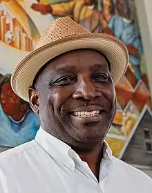 Hubert Massey (born 1958)[1][2] is an artist of a variety of mediums,[3] and well known for his large-scale installations in the Buon Fresco style.[4] Massey has 15 works of public art throughout the state of Michigan,[5] and has been commissioned by various local organizations including universities,[6] museums, hotels, and the Michigan Department of Transportation.[5] He now resides in Detroit, Michigan with his wife Marquita.[5]