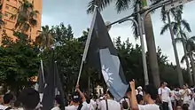 Public protest to defend Hung Chung-chiu by carrying dark ROC flag.
