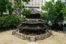 Hwanggungu is a three-storied octagonal shrine north of the main hall.[4]