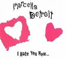 "I Hate You Now..." is a song by US singer Marcella Detroit, released in June 1996 as the first single from her third album Feeler. The single is also her first release with both AAA Records and Mega Records. The single failed to reach the same success as many of Detroit's previous releases, peaking at #107 on the uncompressed UK Singles Chart,[1] and #96[2] on the compressed UK singles chart (with deleted titles for singles with declining sales beyond #75). In Australia, the single peaked at #166.[3]