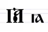 Iotated A (Ꙗ, ꙗ) is a letter of the Cyrillic script, built as a ligature of the letters І and А, and used today only in Church Slavonic. It is unusual among early Cyrillic letters in having no direct counterpart in Glagolitic: Ⱑ (jat’) is used for both /ě/ and /ja/. Accordingly, many early Cyrillic texts (particularly those with Glagolitic antecedents) may use Ѣ for both these purposes; this practice continues into the fourteenth century, but is much more common in the South Slavonic than the East Slavonic area. Nevertheless, is attested in the earliest extant Cyrillic writings, including for example the Codex Suprasliensis and Savvina Kniga - this was not supported to other fonts in other applications.