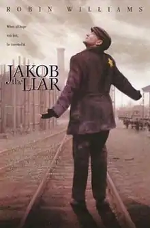 Jakob the Liar is a 1999 American war comedy-drama film directed by Peter Kassovitz, produced by Steven Haft, Marsha Garces Williams and written by Kassovitz and Didier Decoin. The film is based on the book of the same name by Jurek Becker. The film stars Robin Williams, Alan Arkin, Liev Schreiber, Hannah Taylor-Gordon, and Bob Balaban. The film is set in 1944 in a ghetto in German-occupied Poland during the Holocaust and tells the story of a Polish-Jewish shopkeeper named Jakob Heym who attempts to raise the morale inside the ghetto by sharing encouraging rumors that he claims he has heard on a radio. It is a remake of the 1975 East German-Czechoslovak film Jakob der Lügner.
