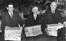 Near the end of the Hoover Administration, Secretary of the Treasury Ogden L. Mills recommended to President Hoover that Douglas be appointed as Assistant Secretary of the Treasury. Douglas began service as Assistant Secretary in February 1932. He continued in the position for a year under President Roosevelt. However, he did not agree with Roosevelt's monetary policies, and he resigned in June 1933. After leaving the Federal Government, he founded the Citizens Committee on Monetary Policy to oppose President Roosevelt's financial program.[1]