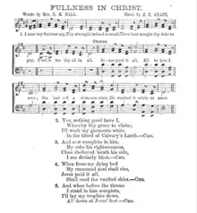 The song lyrics were written in 1865 by Elvina M. Hall, a 45-year-old widowed congregant.[2] One Sunday morning, with an extremely long pastoral prayer, and a continuous sermon, Mrs. Hall's thoughts began to wander while sitting in a choir loft at the Monument Methodist Episcopal Church in Baltimore, Maryland. She wrote down a poem that came to her on the blank flyleaf of her hymnal.[3]