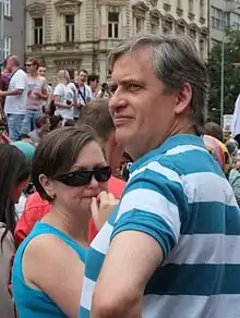 Jiří Dienstbier Jr. (born 27 May 1969) is a Czech politician, lawyer and the Senator for Kladno from 2011 to 2020, representing the Social Democratic Party (ČSSD).[1] He previously served as Minister for Human Rights, Equal Opportunities and Legislation in Bohuslav Sobotka's cabinet,[2] and at various points he has been Deputy Leader of ČSSD,[3] a member of the Chamber of Deputies, and shadow minister of Justice.[4] He was also the ČSSD candidate for the first direct presidential elections in the Czech Republic in 2013.[5][6]