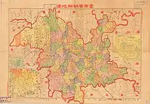 1939 Detail map of Yunnan during ROC era showing Jiangxinpo (shown as top left yellow) and Namwan (show at center left orange and protruding)