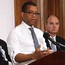 James Edward Johnson[1] (born December 29, 1960) is an American politician, attorney, and community activist, who was formerly an Assistant Secretary of the Treasury and Under Secretary of the Treasury for Enforcement, where he received the Hamilton Award, the Department of Treasury's highest award.[2] He was a Democratic Party candidate in the 2017 New Jersey gubernatorial race.[3][4][5]