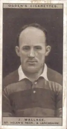 James Wallace (birth unknown – death unknown) was an English professional rugby league footballer who played in the 1920s. He played at representative level for Great Britain and England, and at club level for St. Helens Recs, as a wing, i.e. number 2 or 5.[1]