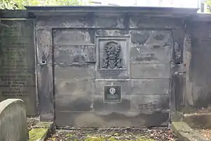 He is buried against the south-west wall in St Cuthberts Churchyard in Edinburgh.