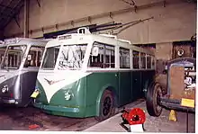 - ↑ intended to cover 5 lines, see Un trolebus transformable [in:] Historias del tren 20.05.13, available here. The project was intended as solution to fuel shortages, aggravated by outbreak of the Second World War. Unlike conventional buses, trolleybuses would rely on electricity generated by coal-based power plants nearby. Switching from buses to trolleybuses was not uncommon in countries suffering from fuel shortages, e.g. the Nazis launched the same project in occupied Gdynia
