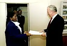 In 1991, she joined the Union for Democracy and Social Progress (UDPS) of Étienne Tshisekedi, the main opposition party to Joseph Mobutu. On 22 May 1997, she was appointed Minister of the Civil Service in the first government of Laurent-Désiré Kabila.[4] She was appointed ambassador of the Democratic Republic of the Congo to Belgium. She resigned after disagreements with Laurent-Désiré Kabila.[3]