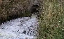 Fraser's Creek provides the bulk of the Kaikorai Stream's flow, and superficially appears to be the "main" river. Excess water (brought here by pipeline from Deep Stream in the Taieri River catchment) is discharged from a city water reservoir.[5] This spilling has taken place since the mid 1970s, providing a source of cool, clear water of high quality that would otherwise not be available in the Kaikorai catchment. In dry weather, about two thirds of the flow of the Kaikorai Stream comes from this outflow.[1] Fraser's Creek flows through Fraser's Gully, a popular recreation reserve clad in native bush.