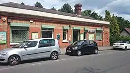 On Platform 2 stands a gabled Grade II listed building station house in the "Old English style of Domestic Architecture" (architect: Richard Whittall)[4] and is similar to the original building at Caterham. This was the original station building which housed a small waiting room for passengers and the original ticket office. In 1899 when the Caterham line was made double-track, a new brick Ticket Office was built on the opposite Platform at road level. The original station house was disused and boarded up for a long time, but protected by its listed status. The house was then sold to a private owner in 2007 following refurbishment.