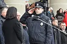 Dekanoidze's main task was to reform the corrupt and inefficient law enforcement agency. Within four months, she had replaced 80% of senior management in Kyiv and up to 60% of regional police leaders[14] by requiring a recertification training that most top brass failed.[15] She appointed mainly new faces to replace them, like Andriy Kryshchenko (known for his role in the battle for Horlivka during the 2014 pro-Russian offensive in the Donbas) as head of the Police of Kyiv,[16] and former Georgian MIA official Giorgi Lortkipanidze as head of the Police of Odesa.[17] She launched an entirely new patrol police in 29 cities in the first half of 2016,[18] a mobile police car program in Kyiv,[19] a River Police Patrol on the Kyiv section of the Dnieper river,[20] and enhanced patrol units in the capital in October 2016.[21] She also launched a pilot program to send traffic violations to people instead of only relying on police stops.[22] In July 2016, she declared having launched a war on crime and another one on corruption[23] and through a new vetting process, fired more than 5,600 law enforcement officers (or about 6% of the total police force).[24] During her term, public polls showed improvements in public trust towards the police.[25]