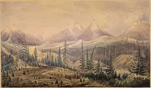 The Kishenehn Ranger Station in Glacier National Park was originally built in 1913, but a fire burned it down in 1919. They rebuilt it in 1921. Located nearly five miles south of the Canada–United States border, the log cabin was one of the earliest administrative structures in the park. The cabin was designed in an early version of what became the National Park Service Rustic style.[2][3]